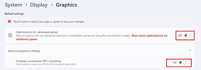 Có vẻ là do tuỳ chọn Hardware Accelerated GPU và Optimizations for windowed games của Win 11 bị xung đột dẫn đến screen tearing.